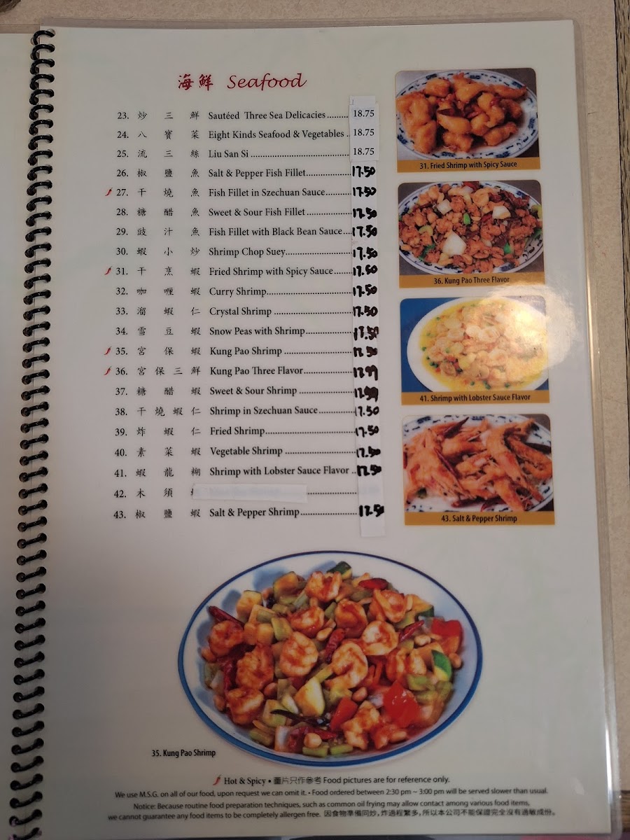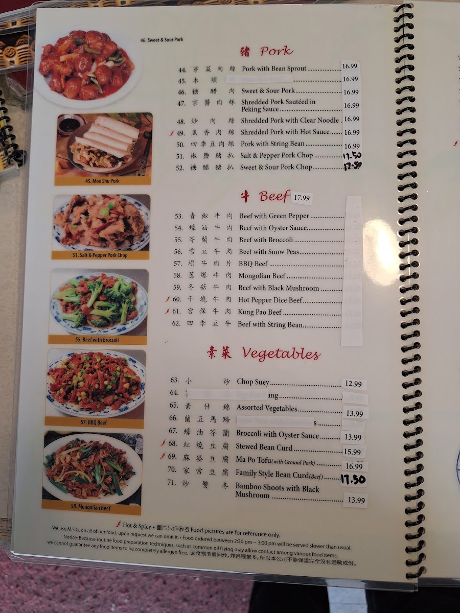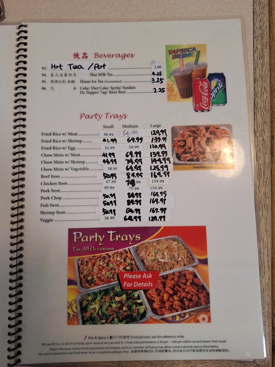 This menu is suitable for casual dining or quick orders, with portions designed to accommodate family-style meals or individual servings. It offers a balance of meat, seafood, and vegetarian-friendly dishes that cater to a variety of preferences throughout the day.